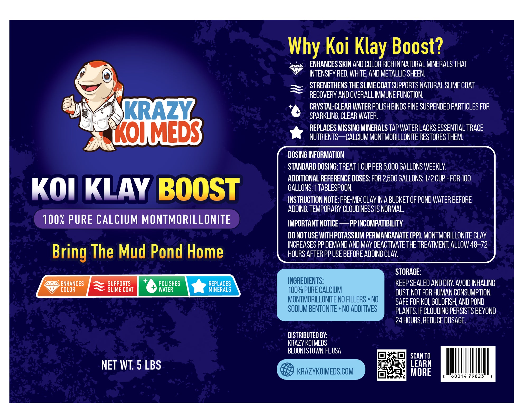 Designed for modern pond systems, Koi Clay Boost restores essential trace minerals lost to treated tap water and recirculating filtration while improving water clarity and pond balance.